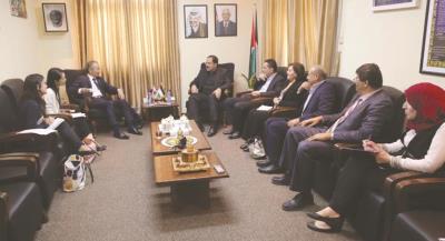 بحث وكيل وزارة التربية والتعليم العالي د. بصري صالح، بمكتبه، اليوم الأحد، مع نائب سفير جمهورية الصين الشعبية لدى فلسطين جين ينغ؛ سبل تعزيز التعاون بين فلسطين والصين في مختلف مجالات التعليم؛ خاصةً البحث العلمي، وذلك بحضور السكرتير الثقافي في السفارة الصينية كياو دان.