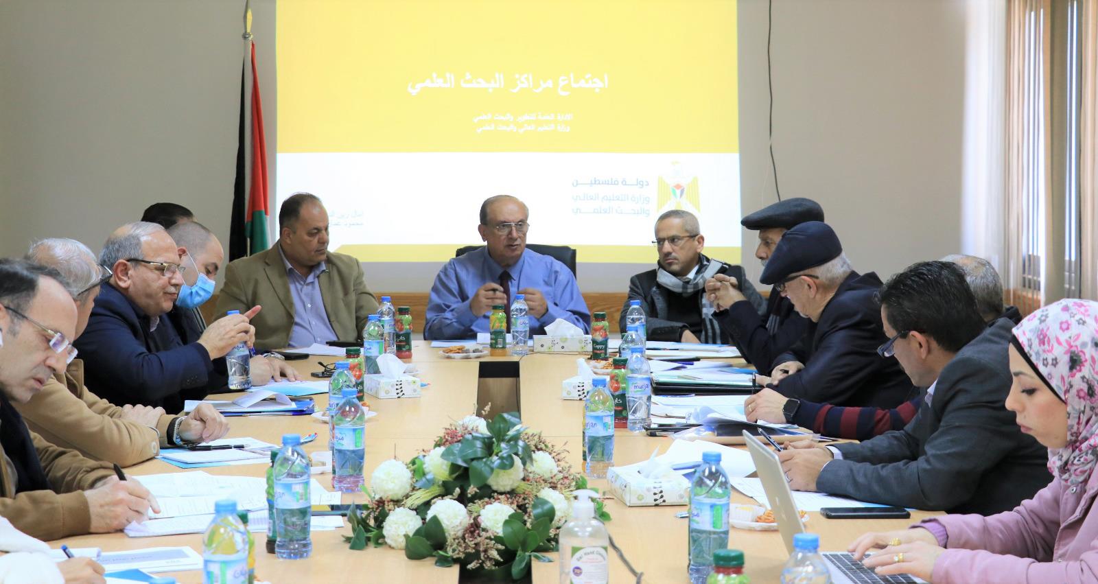 وشدّد الوزير أبو مويس على ضرورة العمل بروح الفريق لمراعاة وإنجاز الأولويات البحثية الوطنية، مشيراً إلى أن الوزارة ستدعم المراكز البحثية وفق الإمكانات المُتاحة، للنهوض والارتقاء بهذه المراكز وبما يخدم الأولويات الوطنية للشعب الفلسطيني.