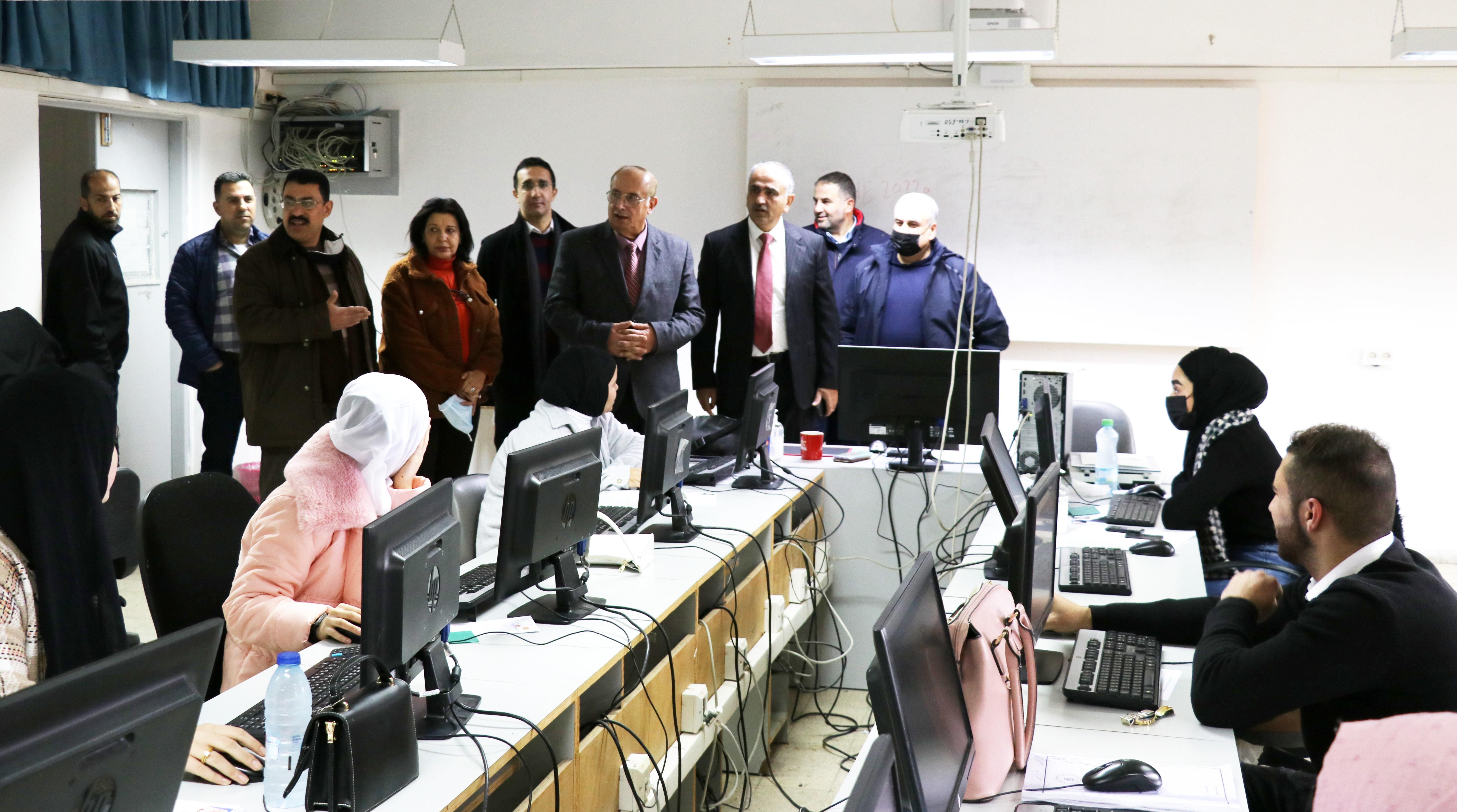 تفقّد وزير التعليم العالي والبحث العلمي أ. د. محمود أبو مويس، اليوم، سير الامتحان التطبيقي الشامل في دورته الشتوية2022 ؛ والذي يُعقد لدرجة الدبلوم المتوسط في الكليات التقنية، إذ أجرى الوزير جولة لمركز عقد الامتحان النظري في كلية مجتمع المرأة برام الله – الطيرة.