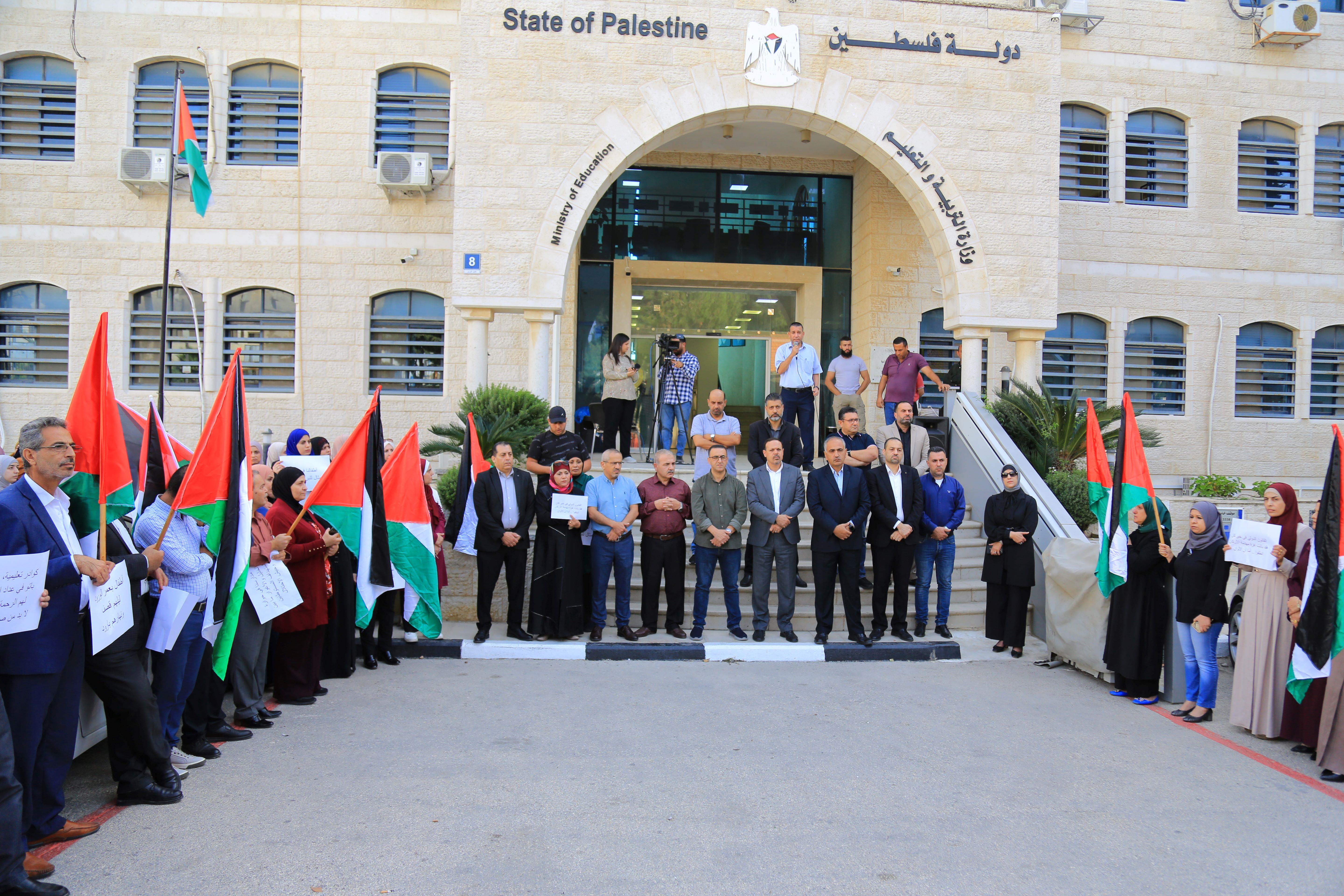 ورفع المشاركون شعارات منددة بجرائم الاحتلال المتواصلة التي تسببت بارتقاء آلاف الأطفال والنساء والمواطنين الفلسطينيين عموماً، واستهداف المدارس والجامعات والطلبة والكوادر التعليمية، مطالبين العالم الحر بمؤسساته الإنسانية والقانونية والأممية للتحرك الفوري لوقف جرائم الحرب التي يرتكبها الاحتلال.