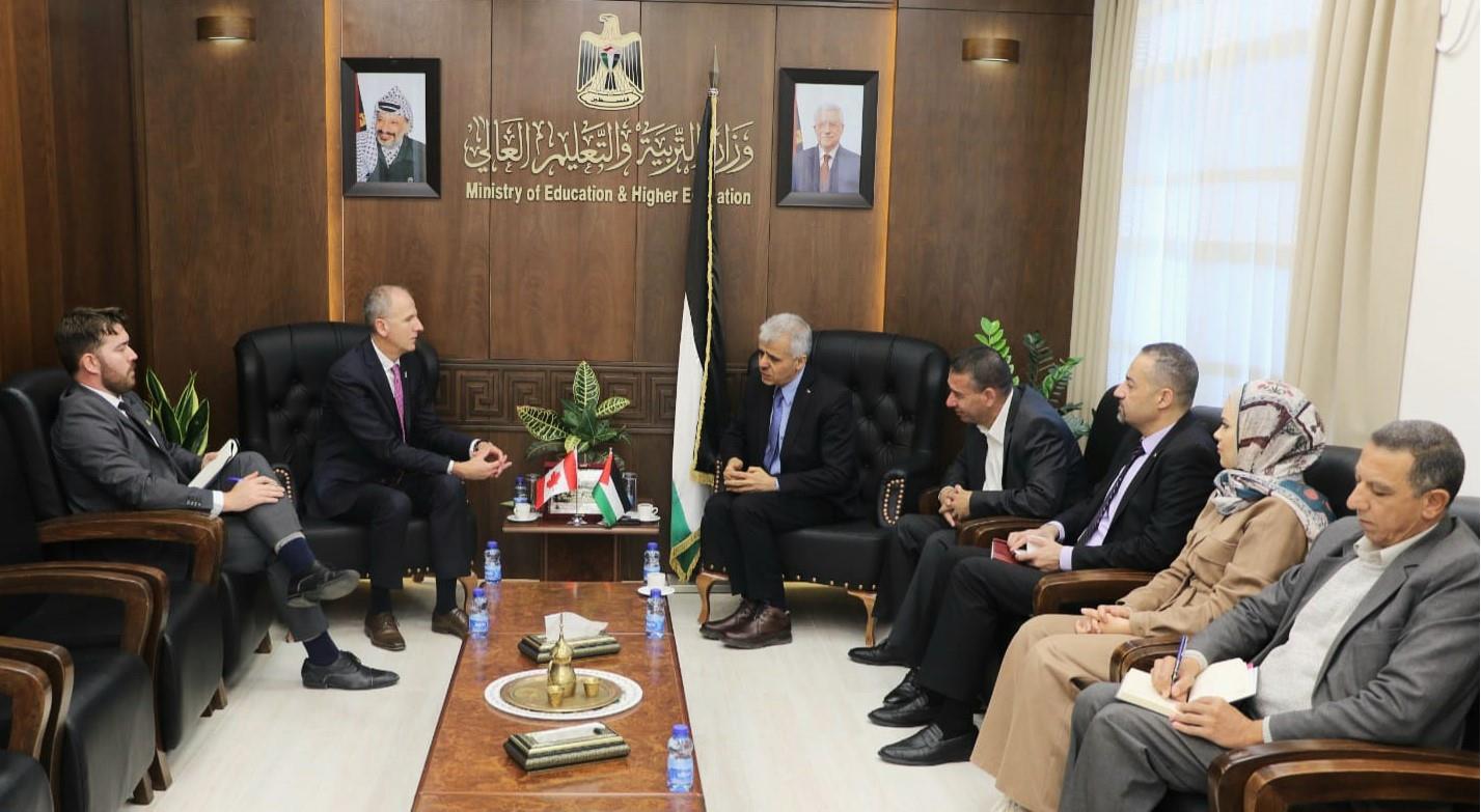 بحث وزير التربية والتعليم العالي أ. د. أمجد برهم، في مكتبه، اليوم، مع ممثل كندا في فلسطين غراهام دايتلز سبل التعاون الثنائي في مجالات التعليم العالي؛ بما في ذلك التبادل الأكاديمي والطلابي، ودعم البحث العلمي، وتعزيز الشراكات بين الجامعات الفلسطينية ونظيراتها الكندية، وتوفير المنح الدراسية، إضافة لمُناقشة الظروف الراهنة التي تؤثر على سير العملية التعليمية، والأكاديمية خاصةً في قطاع غزة.