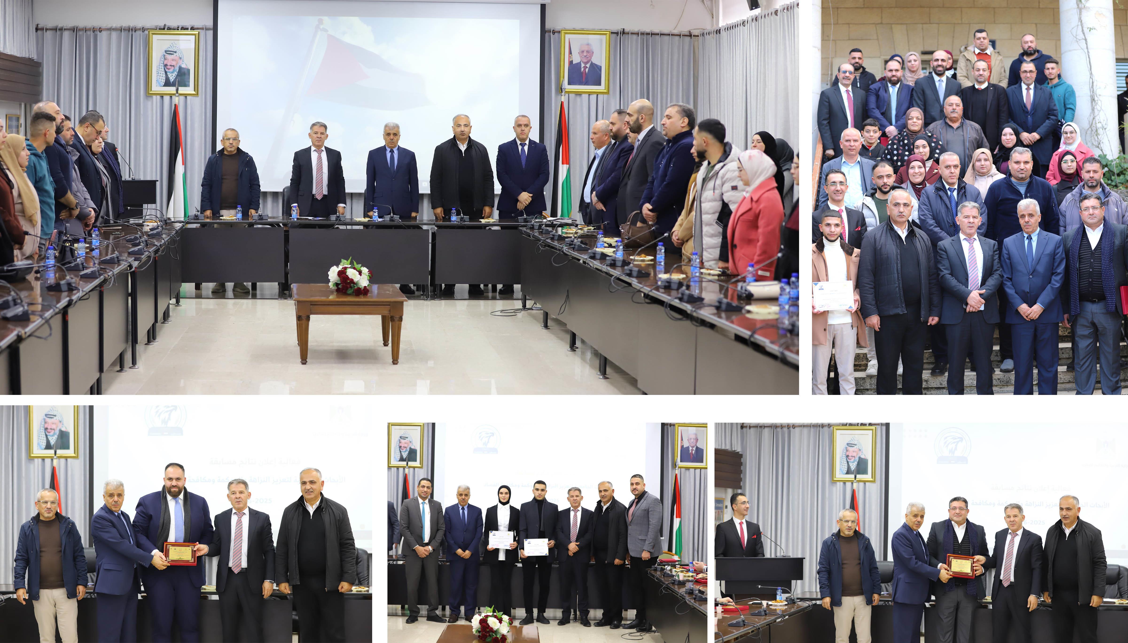 أعلنت وزارة التربية والتعليم العالي وهيئة مُكافحة الفساد، اليوم، نتائج "مُسابقة الأبحاث الجامعية لتعزيز الحوكمة ومكافحة الفساد" المنفذة بالشراكة بين الوزارة والهيئة، وبالتعاون مع مؤسسات التعليم العالي الفلسطينية.