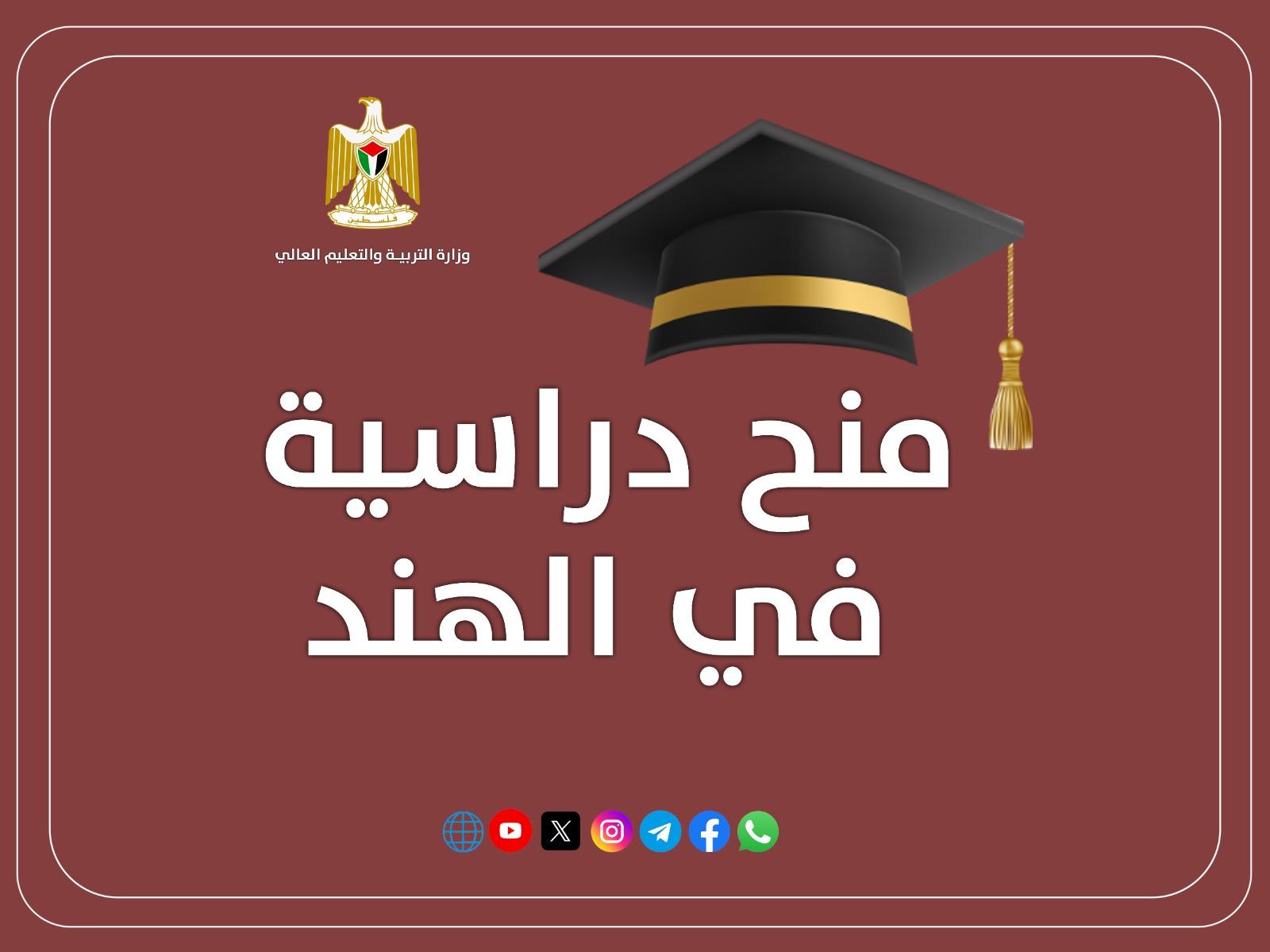 أعلنت وزارة التربية والتعليم العالي، اليوم، عن توفر عدد من المنح الدراسية في الهند للعام الدراسي 2026-2027 في مجال البكالوريوس والدراسات العليا (ماجستير ودكتوراة)