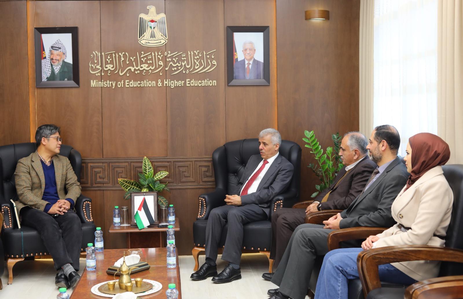 بحث وزير التربية والتعليم العالي أ. د. أمجد برهم، في مكتبه برام الله، اليوم، مع ممثل الوكالة الكورية للتعاون الدولي "كويكا" في فلسطين مينجونغ كيم، مستجدات المعهد الوطني للذكاء الصناعي والتقنيات الناشئة في فلسطين.
